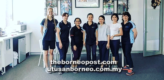 PDK Miri supervisor Chiong Bee Lan (third left), staff Julie Sigau (third right) and Diana Lujum (second right), with Dayna Pool (centre) as well as Get Equip’d volunteers during the three-day training.
