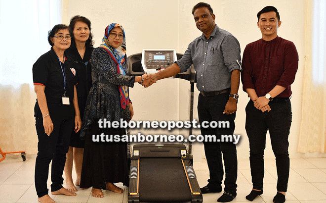 SOPB’s plantation controller Selvarajah Lurdusamy handed over the treadmill to deputy chairwoman of PDK Miri’s Association Of Parents With Special Children (PIBAKIS) Hasima Hamdan.